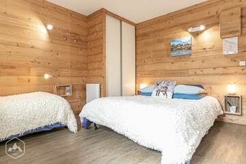 -Un grand lit 2 personnes 140 x 190 cm avec un surmatelas très épais pour un confort optimal et un lit simple 80 x 190 cm